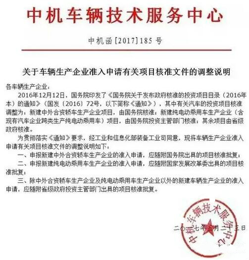 (東正轉(zhuǎn)載)關(guān)于車輛生產(chǎn)企業(yè)準(zhǔn)入申請(qǐng)有關(guān)事項(xiàng)核準(zhǔn)文件的調(diào)整說明