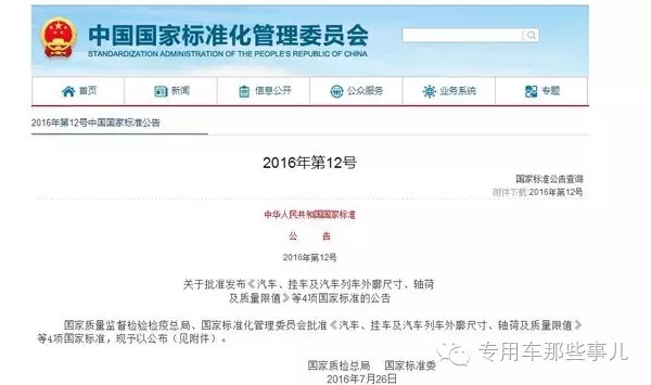 關(guān)于新版GB1589的修訂成為大家熱議的話題,何時(shí)正式發(fā)布牽動(dòng)著國(guó)內(nèi)車(chē)輛生產(chǎn)企業(yè)、物流運(yùn)輸企業(yè)和終端用戶的心,根據(jù)中國(guó)國(guó)家標(biāo)準(zhǔn)化管理委員會(huì)的最新公告,2016版GB1589在2016年7月26日已正式實(shí)施發(fā)布。
