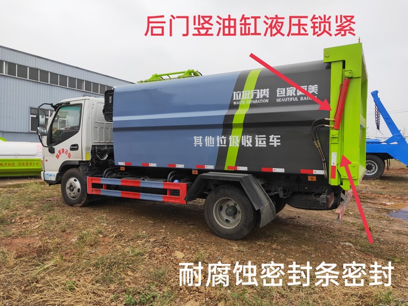 掛桶式污泥清運車,廂體液壓油缸舉升卸料,頂蓋可開手動翻蓋對接漏斗、傳送帶裝載、也可提升掛桶裝載,后蓋液壓鎖緊(四周耐腐蝕密封條密封),運輸中環(huán)保無滴漏,駕駛室內外兩用均可操作。箱體連接處滿焊加工,防腐防銹處理,內部平整光滑,保證了自卸含水污泥、糞污的平順性,后蓋四周耐腐蝕密封條密封,保障了密封性使其達到運輸中滴水不漏。